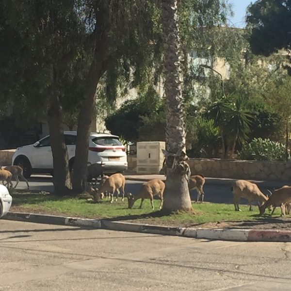 W całym mieście spodziewajcie się też kozic, koziorożców nubijskich i gazel! Całe stada wędrują spokojnie po miasteczku, skubią trawę na miejskich trawnikach. Są raczej nie groźne, i w żadnym wypadku nie wolno ich dokarmiać!