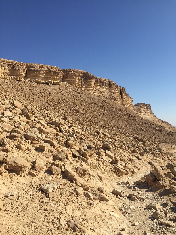 Przechodzicie przez cały park tak jak opisane wyżej, potem czeka Was wspinaczka na samą górę (trasa nie jest bardzo trudna, ale są drabiny, po których trzeba się wspinać, i bywa dosyć stromo). Dochodzicie w ten sposób do drugiego parkingu (upper parking lot). Stąd możecie albo łapać stopa, albo iść dalej przez pustynię aż do Avdat (do pustynnego Mc Donalda), gdzie znajdziecie najbliższy przystanek autobusowy.