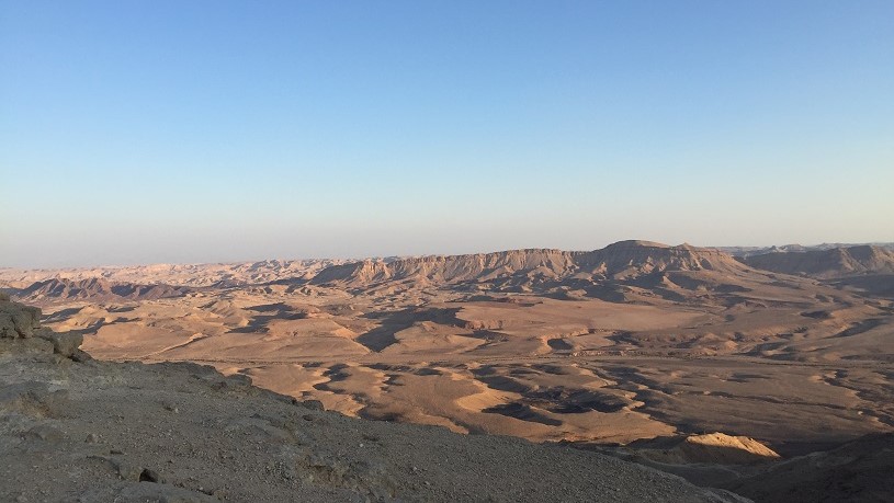 Ein Avdat i Avdat. Rano ruszam autobusem do Midreszet Ben Gurion następnie wędrówka przez cały park. Na górze łapie stopa, w drodze powrotnej odwiedzam jeszcze Avdat. Po południu spacer po Mitzpe Ramon i oglądanie zachodu słońca z Camel Rock.