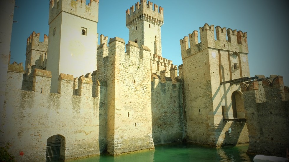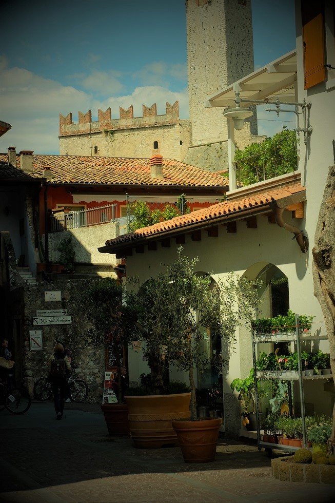 Ale samo miasteczko też jest bardzo przyjemne i warto po prostu pospacerować po starówce, otoczonej z 3 stron wodą. Do miasta wchodzimy przez słynną bramę w zamku Scaliglierich. Zamek też jest ciekawy – jeśli macie czas, warto wspiąć się na szczyt wierzy i podziwiać widok na całe jezioro.