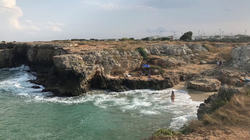 Tutaj plaż jest stanowczo mniej, jeśli macie jeden dzień – wyruszcie jednak na południe. Jeśli jesteście rowerem szczególnie – tutaj droga jest mniej przyjemna, najpierw jedziemy przez przemysłową część Monopoli, a później wzdłuż głównej drogi do Bari – jest głośno, samochody jadą tak naprawdę tuż obok (od razu napiszę, są 2 równoległe drogi, więc nie mijają nas ciężarówki itp.).