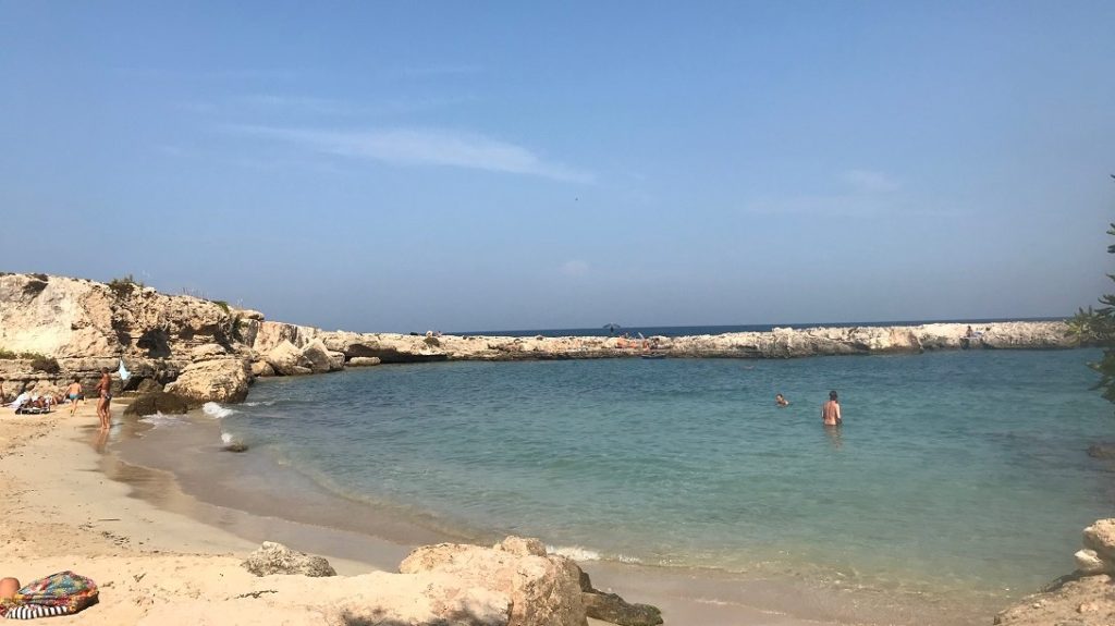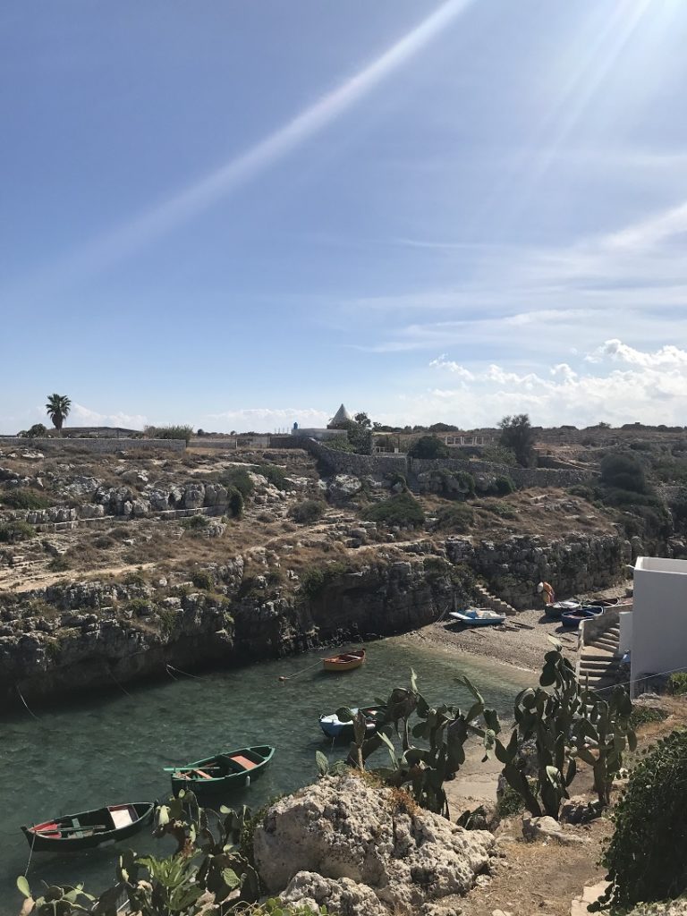 To już bliżej do Polignano a Mare, ale to miejsce było zachwycające! Po tłumie i zgiełku w Polignano a Mare to miejsce było oazą spokoju w wyjątkowo pięknej scenerii. Mamy niewielką zatoczkę z plażą, z zacumowanymi tradycyjnymi łódkami. W górze nad nami dominuje tradycyjne trullo. Można leżeć na niewielkiej plaży albo betonowym pomoście, lub po prostu usiąść na jednej z ławek i podziwiać widoki.