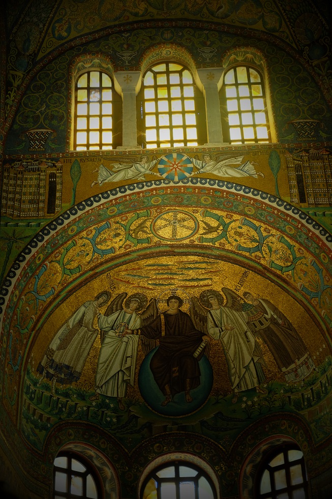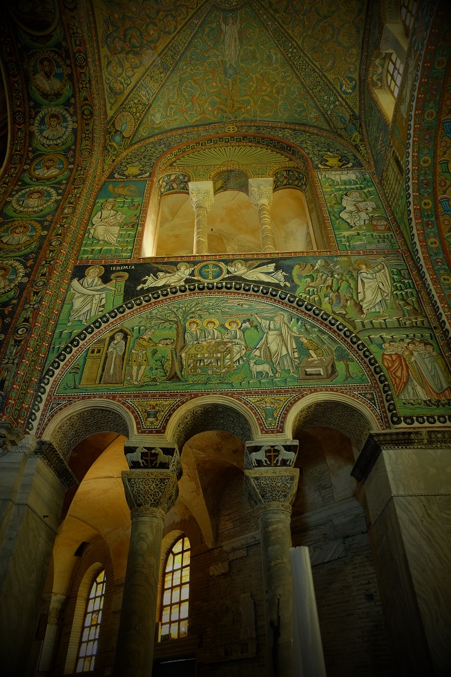 Najlepiej zacząć od Bazyliki San Vitale, do której wchodzimy przez słynny łuk –  Arco di San Vitale. Budowę tego kompleksu rozpoczął cesarz Teodoryk w 521 r a dokończył cesarz Justynian. Za najciekawsze mozaiki uważane są te przedstawiające orszak Justyniana i Teodory.