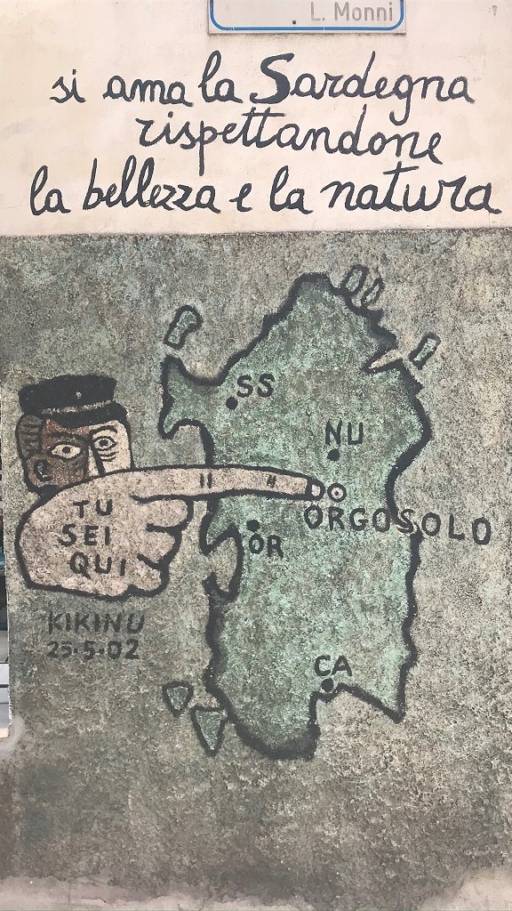 Moim zdaniem najciekawsze miejsce. Słynie głównie z niezwykłych murali, porozrzucanych po całym mieście. Można wziąć audioprzewodnik, wynająć przewodnika lub po prostu poszwendać się po miasteczku i samodzielnie odkrywać tą niezwykłą sztukę. Murale zaczęto tworzyć w Orgosolo od 1969 roku, w czasach wielkich zmian społecznych i politycznych. Początkowo głównym tematem były problemy społeczne, później także życie codzienne. Murale to naprawdę dzieła sztuki – nawiązują do kubizmu i innych kierunków sztuki, można odnajdywać wpływy sztuki Diega Rivery. Spacer to właściwie wizyta w galerii sztuki na świeżym powietrzu.